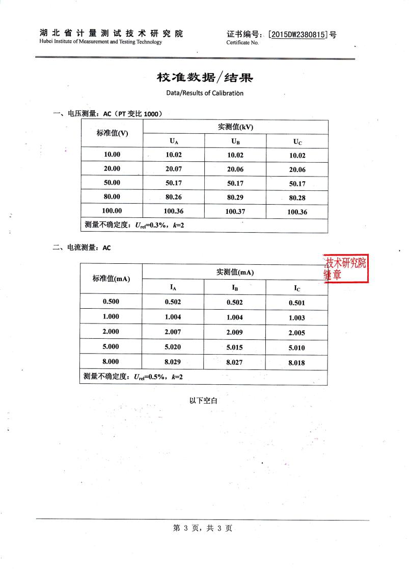 泄漏電流全電流波形、基波有效值、峰值。 泄漏電流阻性分量基波有效值及3、5、7次有效值。 泄漏電流阻性分量峰值:正峰值Ir+ 負(fù)峰值Ir-。 容性電流基波,全電壓、全電流相角差。 電壓有效值。 避雷器功耗。 |