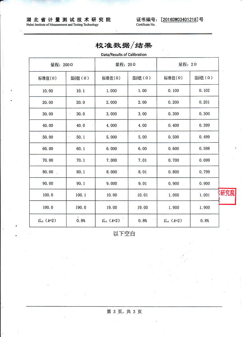 | 測(cè)試范圍 | 0—199.99mΩ |