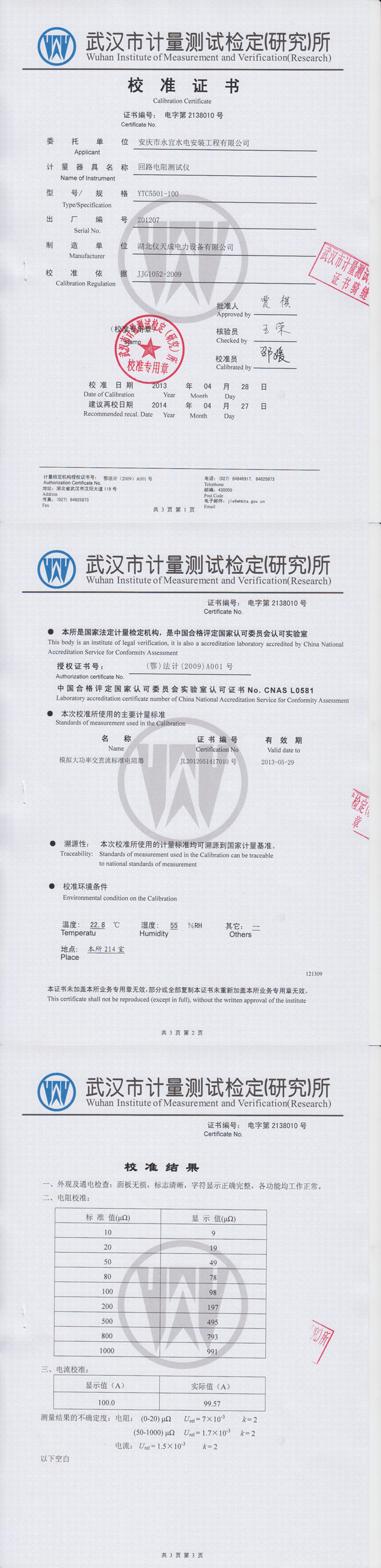 YTC5501-100回路電阻測(cè)試儀資質(zhì)證書(shū)