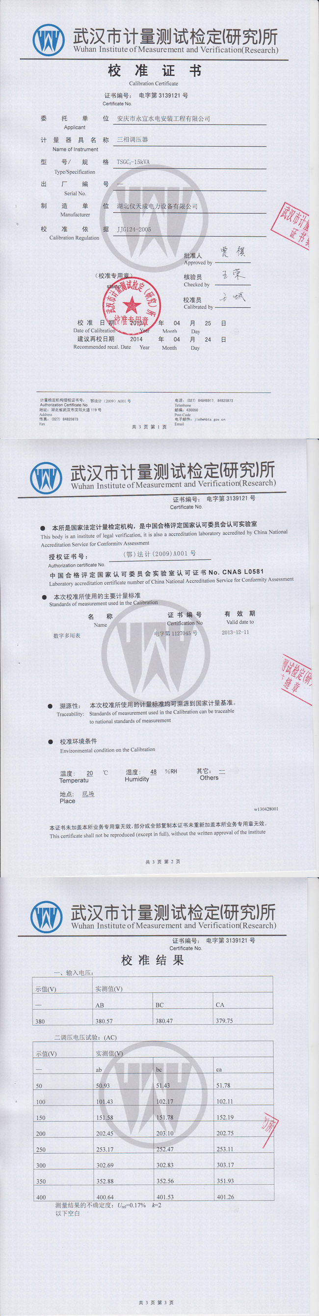 三相調(diào)壓器資質(zhì)證書