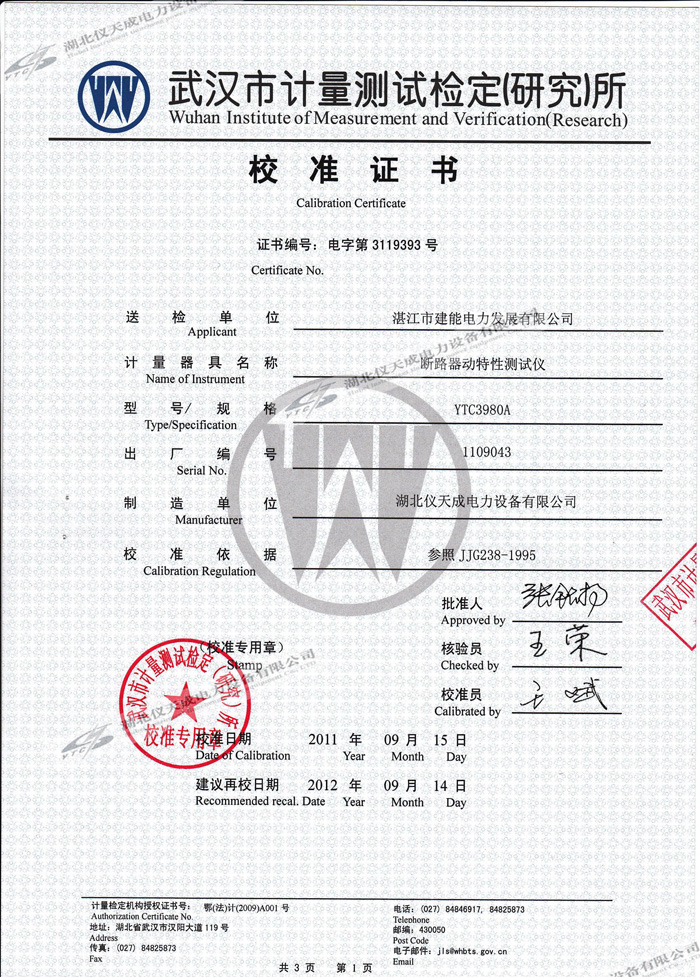 轉(zhuǎn)載:"YTC3980A斷路器動(dòng)特性測試儀的資質(zhì)證書" 請(qǐng)注明來源于儀天成電力。 更多技術(shù)問題請(qǐng)致電儀天成電力客戶服務(wù):027-87876585,技術(shù)部專線:027-87876585,在線客服:719388481