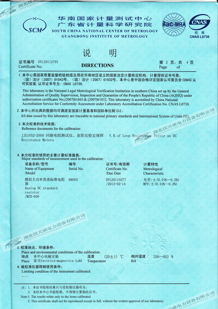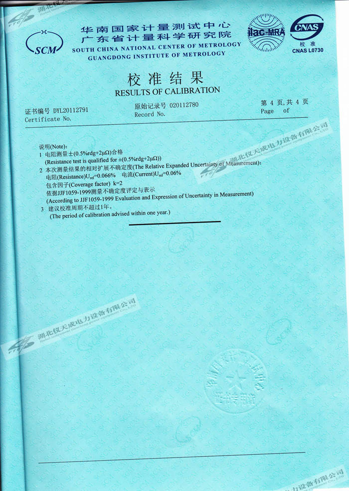 轉(zhuǎn)載:"YTC5501-100A 回路電阻測(cè)試儀的資質(zhì)證書(shū)" 請(qǐng)注明來(lái)源于儀天成電力。 更多技術(shù)問(wèn)題請(qǐng)致電儀天成電力客戶服務(wù):027-87876585,技術(shù)部專線:027-87876585,在線客服:719388481