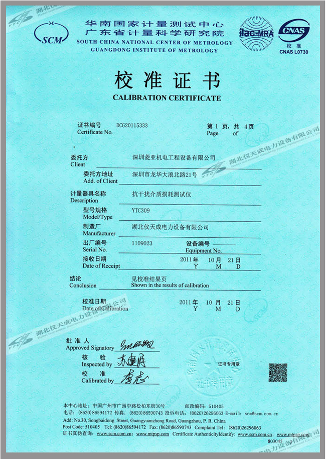 轉(zhuǎn)載:"YTC309抗干擾介損自動(dòng)測(cè)試儀鑒定證書" 請(qǐng)注明來(lái)源于儀天成電力。 更多技術(shù)問題請(qǐng)致電儀天成電力客戶服務(wù):027-87876585,技術(shù)部專線:027-87876585,在線客服: